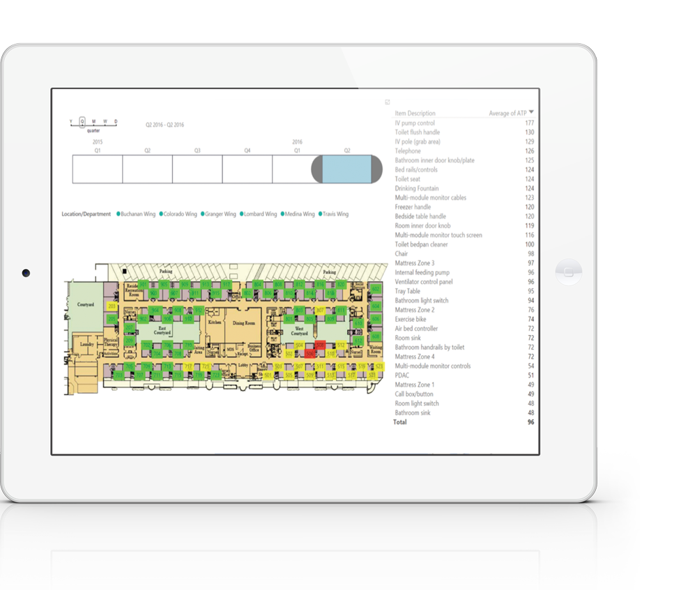 View contamination levels by floor planEasily view every room with an uploaded floor plan view. Enhancing overall patient and staff safety and allowing for quicker response. |
